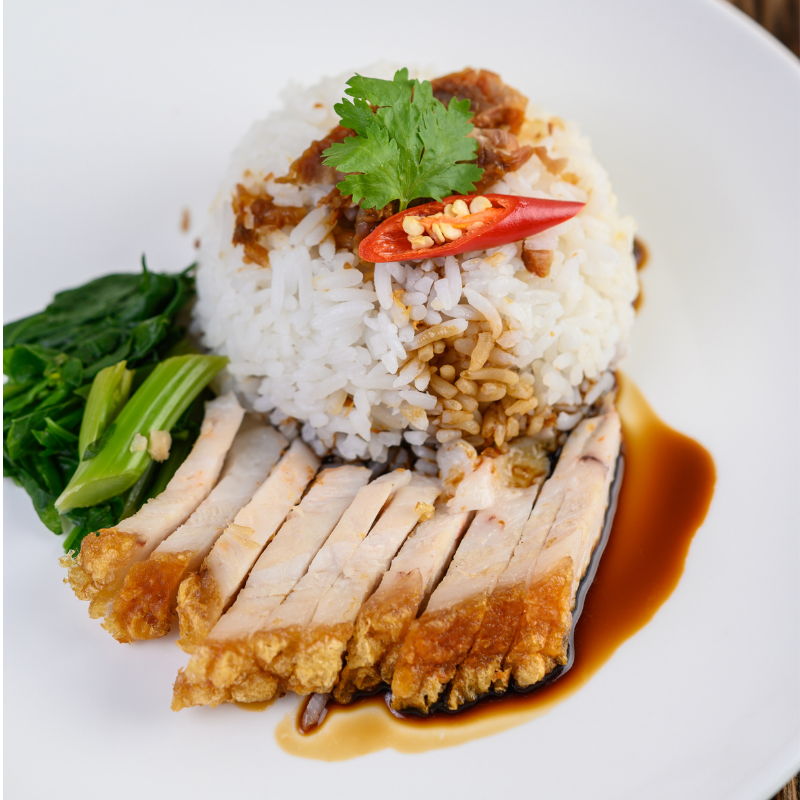 The National Dish of Singapore. Indulge in our signature Hainanese Chicken Rice, a true icon of Singapore’s culinary heritage. This dish features succulent, poached chicken served with fragrant rice cooked in rich chicken broth and ginger.